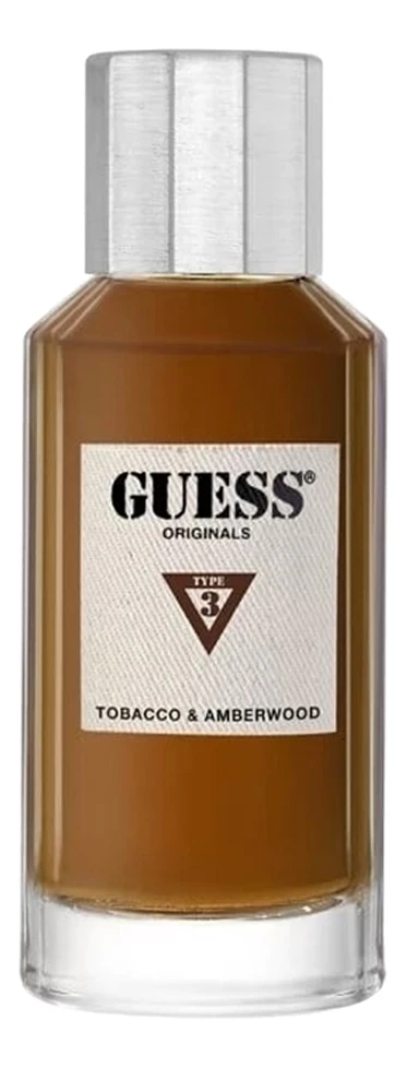 Guess Originals: Type 3 - Tobacco & Amberwood (Табак и амбра) — древесно-амбровый аромат, выпущенный в 2023 году брендом Guess. Парфюм бросает вызов общепринятым нормам и переосмысливает границы.