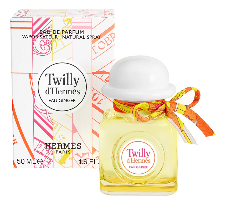 Hermes Twilly D'Hermes Eau Ginger — яркий, задорный и романтичный женский цветочно-древесный аромат, выпущенный в 2021 году французским брендом модных аксессуаров Hermes. Парфюм представляет собой фланкер аромата Twilly, выпущенного в 2017 году. От исходного аромата парфюм унаследовал оригинальный флакон с колпачком в форме шляпки, но на этот раз выдержанный в солнечных желтых оттенках. Завершающий штрих — завязанная вручную шелковая лента, игриво украшающая флакон.