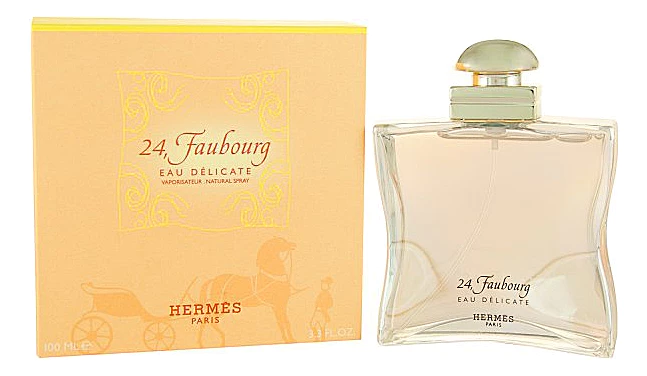 Hermes 24 Faubourg Eau Delicate («Гермес. 24 Фобур О Деликат») это новый женский аромат, вышедший в свет в 2003 году. Он обладает необычайно легким, свежим запахом, который прекрасно подойдет для современной, женственной леди, которая любит солнечные, жизнерадостные ароматы. Выбирая Hermes 24 Faubourg Eau Delicate Вы приобретаете прозрачный, легкий, сверкающий аромат.