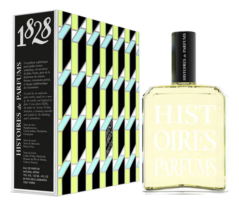 Парфюмерная композиция аромата Histoires de Parfums 1828 men звучит нотками сочных фруктов и зелени: мандарина, зелени, эвкалипта и сосны. Ноты перца, кедра, ветивера и мускатного ореха немного оттеняют сам аромат Histoires de Parfums 1828 men, привносят теплоту, а окружают композицию легкая дымка из священного ладана.