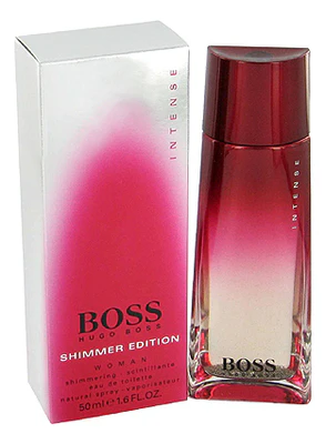 Свежая и более легкая версия аромата Boss Women Intense представлена парфюмом Boss Women Intense SHIMMER. Аромат состоит из интригующего, легкого касания цветочных нот. Аромат окутает нежным объятием теплого, блаженного запаха пряностей. Яркая чувственность и настроение бесконечного праздника в мерцающем, воздушном парфюме. Ваниль, орхидея, амбра и янтарь – основные нотки парфюма Boss Women Intense SHIMMER (Босс. Женщина. Интенсивный. Мерцание). Аромат выпустили в 2004 году. Будоражащие нотки сандалового дерева, немного терпкий пачули, который окружит роскошным шлейфом. Нежный, легкий аккорд чистоты и свежести вносят цветочные нотки розы, орхидеи и жасмина. Парфюм создаст ауру шарма и соблазна, которая привлечет внимание и покорит мужские сердца. Сердечные нотки: турецкая роза, жасмин и ваниль. Ноты базы: амбра, стиракс, сандаловое дерево, пачули.