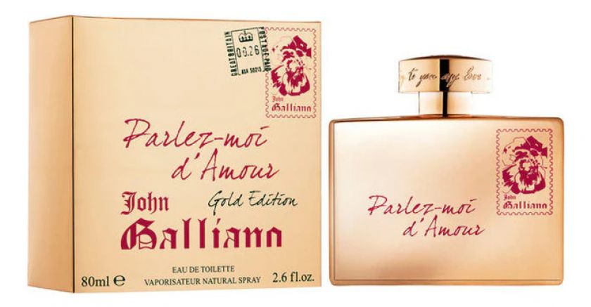 Популярный английский бренд John Galliano в 2012 году выпустил аромат для женщин Parlez-Moi d'Amour Gold Edition. Он стал частью цветочной, фруктовой группы ароматов. Парфюм является пополнением известной коллекции ароматов от John Galliano - Parlez-Moi d`Amour.