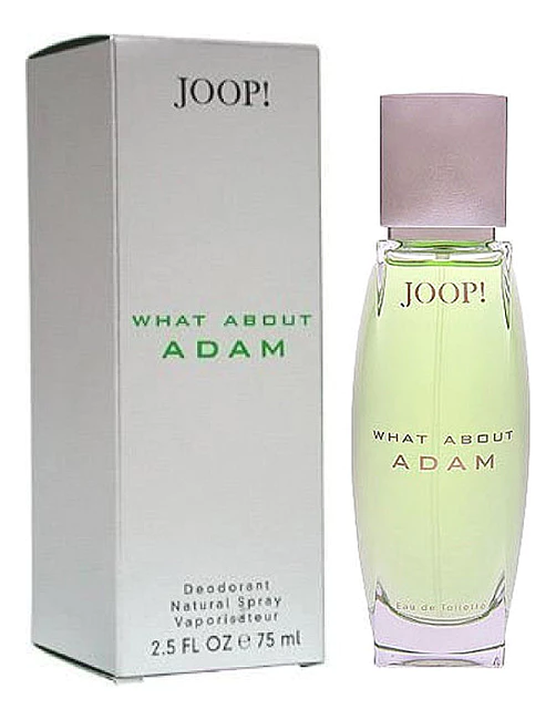 What About Adam - аромат для мужчин от немецкого дома моды Joop! Парфюмерная композиция What About Adam от Joop! была создана в 1992 году и вошла в группу ароматов древесные фужерные. Автор букета - парфюмер Calice Becker. Аромат подойдет человеку, любящему долгоиграющие древесные ноты в сочетании с туманящей рассудок, терпкой растительной тональностью фужерных оттенков.