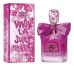 Флакон Viva La Juicy Petals Please переливается яркими розовыми оттенками и украшен металлической пластинкой розового цвета и атласным бантом с подвеской в виде матовых цветов с розовыми камнями в центре. Украшенная цветами хрустальная крышка придает флакону особое очарование.