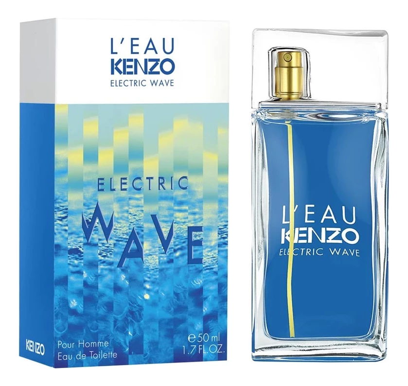 L'Eau Par Kenzo Electric Wave Pour Homme – яркий, освежающий, прохладный фужерно-цитрусовый мужской парфюм, выпущенный в 2016 году под маркой известного французского модного дома Kenzo. Разработанный парфюмерами Olivier Cresp и Dora Baghriche-Arnaud, парфюм помещен в простой прозрачный флакон с ассиметричным горлышком. Мерцающие синие глубины парфюма и ярко-желтый распылитель напоминают о синем море и касающихся его поверхности солнечных лучах.
