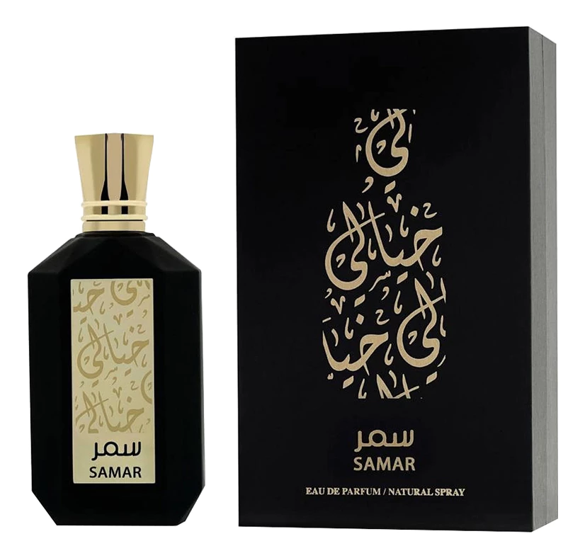 В начальном аккорде парфюма Khayali Samar сладкая нуга из аниса смешивается с ароматными звёздами кардамона. Чуть позже пикантная составляющая дополняется сливочной нотой маршмеллоу и пышным букетом флёрдоранжа, жасмина и розы. Постепенно в цветочную мелодию вплетаются тёплые штрихи амбры, ванили и кожи, образуя пленительную и сладкую ароматическую дымку.