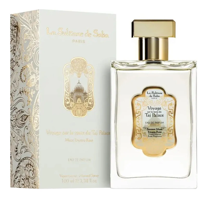 La Sultane De Saba Voyage Sur La Route Du Taj Palace - Musc Encens Rose — роскошные унисекс-духи с восточным ароматом, выпущенные в 2020 году французским брендом нишевой парфюмерии La Sultane De Saba. Нежные и загадочные духи, словно натуральное аювердическое лечение, яркое неординарное путешествие на загадочный таинственный Восток.