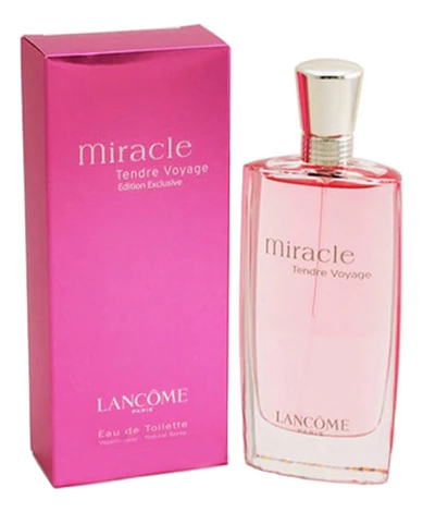 Парфюмерный модный дом Lancome в 2009 году выпустил освежающий и легкий женский аромат Lancome Miracle Tendre Voyage. Волшебный, упоительный аромат увлечет в незабываемое и неповторимое путешествие, где на каждом шагу встречаются удивительные приключения, изумительные чудеса и новые открытия. Miracle Tendre Voyage создан для мечтательных, непосредственных женщин, уверенных в себе и обворожительных, дерзких и чувственных, чья жизнь наполнена только яркими красками, положительными эмоциями и романтическими чувствами. Уникальный, очаровательный и восхитительный аромат Ланком Миракл Тендр Вояж — более легкая, прохладная и воздушная версия известного парфюма Lancome Miracle.