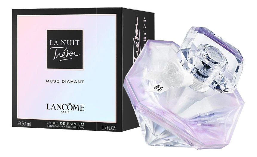 La Nuit Tresor Musc Diamant — элитные духи с восточно-цветочным ароматом для женщин, созданные в 2019 году парфюмером Christophe Raynaud для знаменитой косметической марки Lancome из Франции. Утонченный, чувственный аромат представляет собой новый свежий взгляд на культовый парфюм Tresor Lancome, который был выпущен в 90-е годы прошлого века.