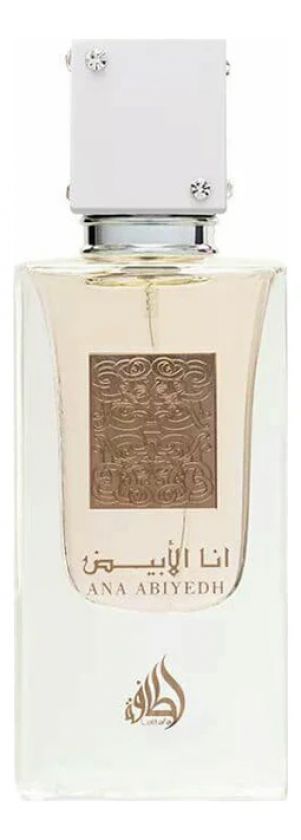 Ana Abiyedh — мягкий, обволакивающий и магнетический восточный унисекс-парфюм, выпущенный арабским парфюмерным брендом Lattafa. Сильный и независимый аромат придется по душе ярким, самодостаточным личностям, точно знающим, что они хотят от жизни и умеющим достигать поставленные цели. Простой по форме прямоугольный флакон украшен крышечкой со стразами, подчеркивающей сдержанную роскошь заключенного внутри парфюма.