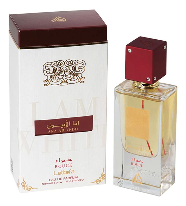 Ana Abiyedh Rouge — стильный и гармоничный восточный унисекс-парфюм, выпущенный в 2016 году арабским парфюмерным брендом Lattafa. Своим удивительным звучанием он словно погружает в атмосферу знаменитых восточных рынков, воздух которых наполнен ароматами пряных специй, свежей древесины и запахом цветов. Аромат заключен в лаконичный прямоугольный флакон, украшенный резной золотистой шейкой и бордовым колпачком со стразами.
