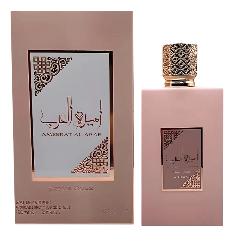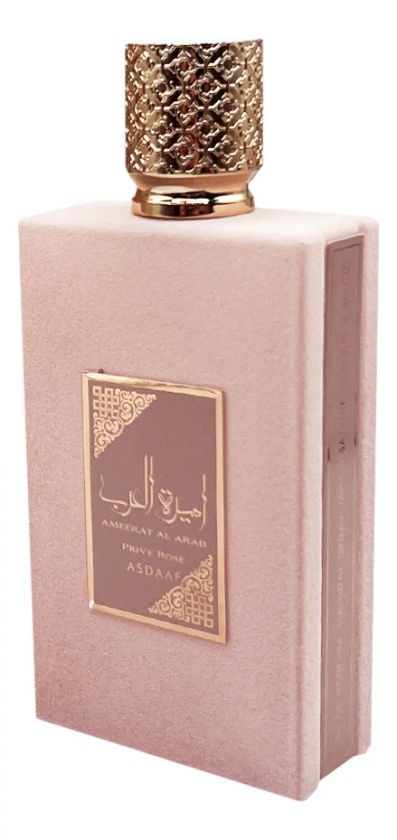 Lattafa Ameerat Al Arab Prive Rose — изящный, утонченный и трогательный женский цветочно-фруктовый аромат, окутанный волшебством сладких мускусных оттенков. Парфюм выпущен в 2022 году арабским парфюмерным брендом Lattafa. Прямоугольный флакон окрашен в матовый тон «пыльной розы» и украшен золотистым колпачком.