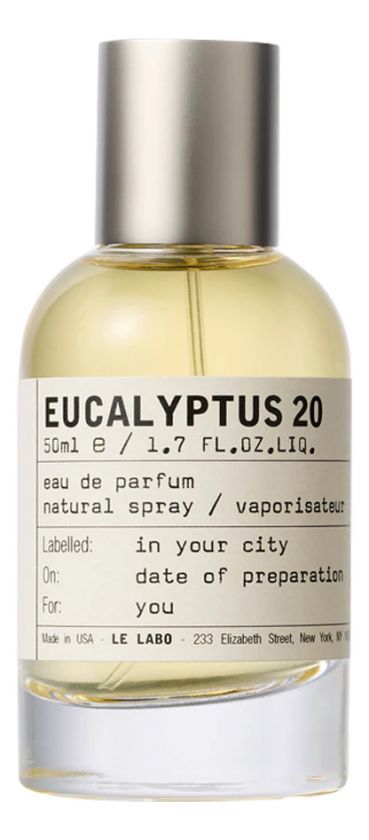Le Labo Eucalyptus 20 — древесно-фужерный унисекс-аромат, выпущенный в 2025 году американским нишевым парфюмерным домом Le Labo. Парфюм передает необузданный дух открытых ландшафтов и тихого наслаждения ими. Аромат приглашает своих владельцев принять тишину и воссоединиться с окружающей средой. Своим звучанием он передает суть тихой силы природы, предлагая чувственный побег, который находит отклик у тех, кто ищет простоту и глубину в своих парфюмах.