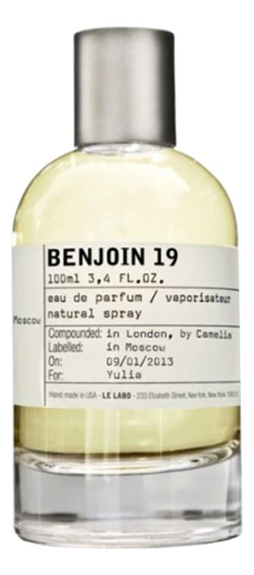Le Labo Moscow Benjoin 19 («Ле Лабо. Москва. Бензоин 19») – новый аромат, выпущенный в 2013 году. Аромат для женщин и мужчин принадлежит к семейству восточных древесных. Вдохновением для аромата стала история об Анне Карениной и Вронском. Парфюм посвящен первой встрече легендарной пары и олицетворяет Москву 19 века. Строгий и завораживающий, он играет глубокими амбровыми оттенками и шероховатыми древесными нюансами.