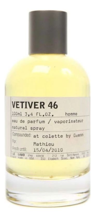 Le Labo Vetiver 46 — невероятный по глубине и самобытности звучания древесный унисекс-парфюм, выпущенный в 2006 году американским нишевым парфюмерным брендом Le Labo. Созданная парфюмером Марком Бакстоном ароматическая композиция посвящена ветиверу. В основу парфюма лег ветивер, выращенный на Гаити и переработанный по уникальной технологии в Грассе. Это позволило максимально передать уникальный запах этого парфюмерного ингредиента.