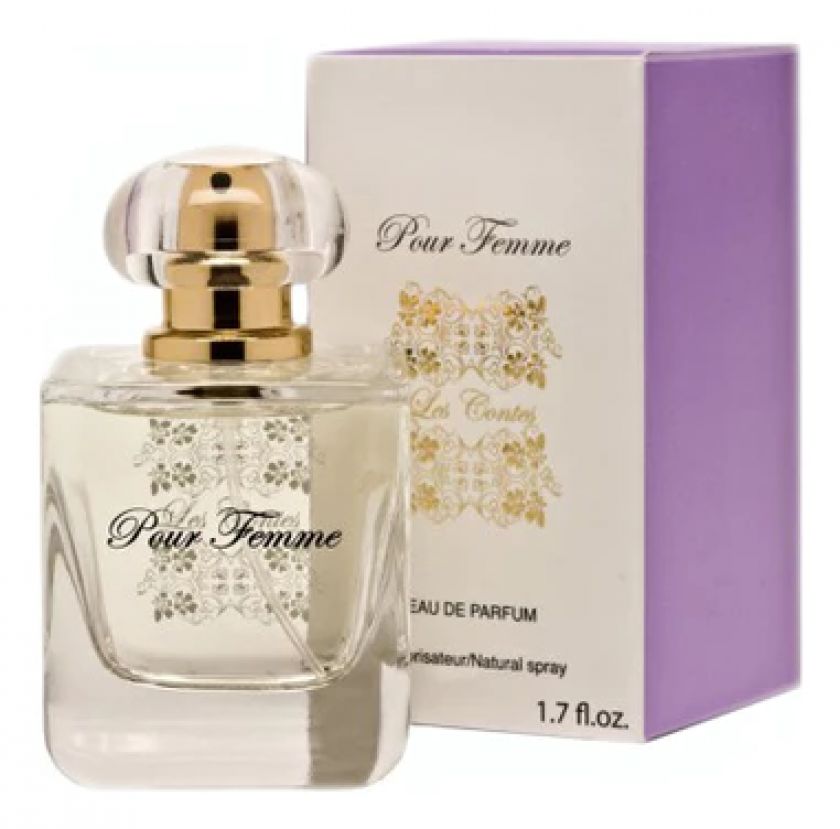 Пирамида аромата Les Contes Pour Femme составлена из верхних нот цитрусов и фруктов, фрезии, бергамота и персика, который добавляют чувственность в этот солнечный сад. Ноты «сердца» отличает изысканное сочетание нежности розы, свежести лотоса и чувственности жасмина. Базовые ноты пленяют и увлекают ароматом пачули, который подчеркнут амброй и мускусом.