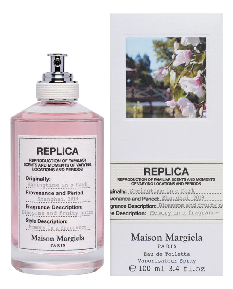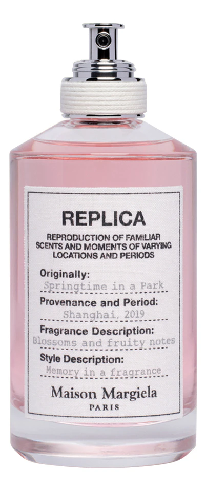 Replica Springtime In A Park — туалетная вода с цветочно-мускусным ароматом для женщин и мужчин, созданная в 2019 году парфюмером Jacques Cavallier для французского дома высокой моды Maison Martin Margiela. Изысканный и освежающий аромат звучит, словно воспоминания о счастливых временах прогулок с любимым человеком по цветущим аллеям весеннего парка.