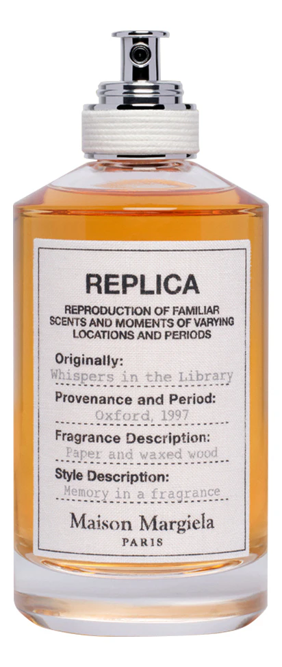 Margiela Replica Whispers In The Library —нишевая парфюмерная вода с восточно-древесным ароматом для женщин и мужчин, созданная в 2019 году французским модным домом одежды и аксессуаров класса «люкс» Maison Martin Margiela. Аристократичный, шикарный и благородный унисекс-парфюм ReplicaWhispersInTheLibrary словно дышит непередаваемым элегантным ароматом дорогих сигар, старинного виски, собрания книг и неспешной беседы на фоне яркого огня от потрескивающих в камине бревен библиотеки древнего замка.