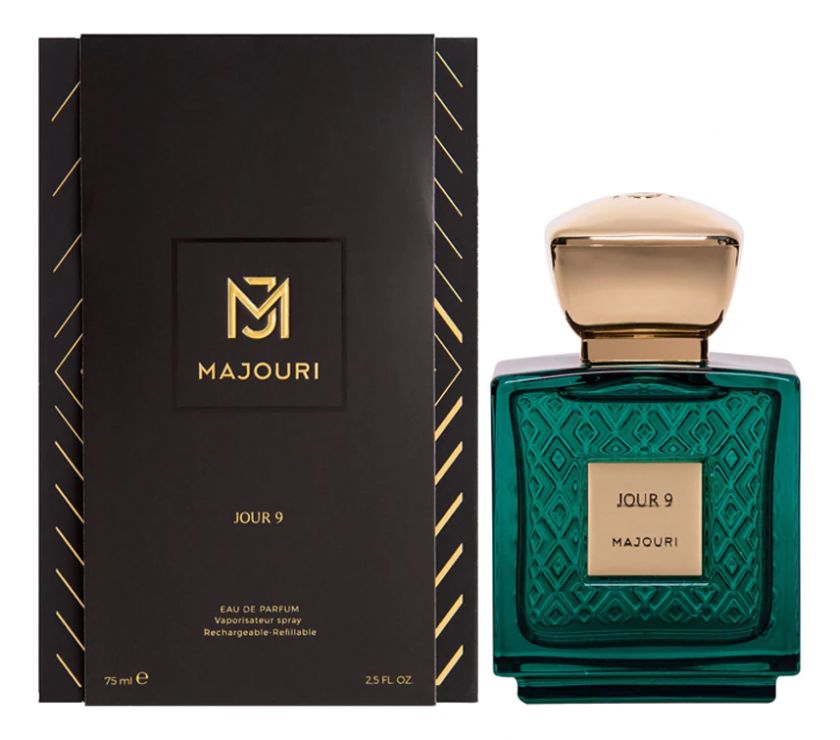 Древесно-пряный аромат Majouri Jour 9 адресован мужчинам и женщинам. Композиция создана парфюмером Дженнифер Жамбон в 2019 году. Девиз парфюма: «Не ждать счастья, а жить им. Видеть его проявления в каждой минуте и каждом событии».