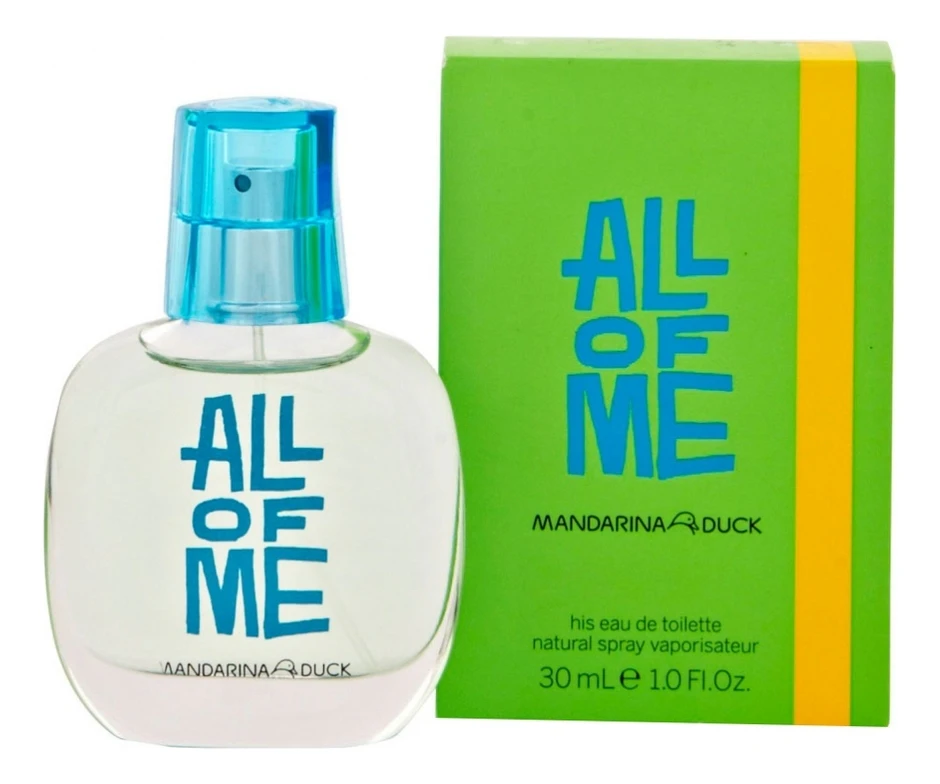 All of Me for Him – аромат-новинка для молодых мужчин от испанского дома моды Mandarina Duck. Освежающий аромат All of Me for Him от Mandarina Duck («Всё обо мне для Него» от Мандарина Дак) был создан в 2012 году и входит в группу ароматов цитрусовые фужерные.