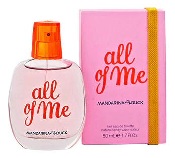 All of Me for Her – ароматная новинка для молодых женщин от испанского дома мод Mandarina Duck. Игривый аромат All of Me for Her от Mandarina Duck («Всё обо мне для Нее» от Мандарина Дак) был создан в 2012 году и входит в группу ароматов шипровые фруктовые.