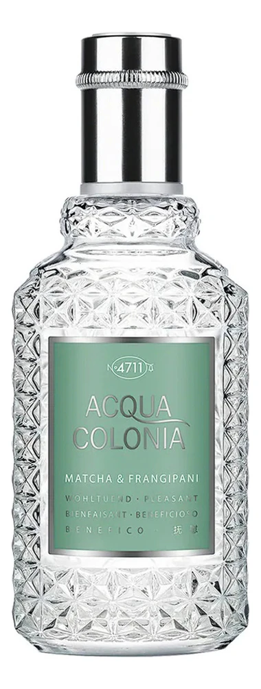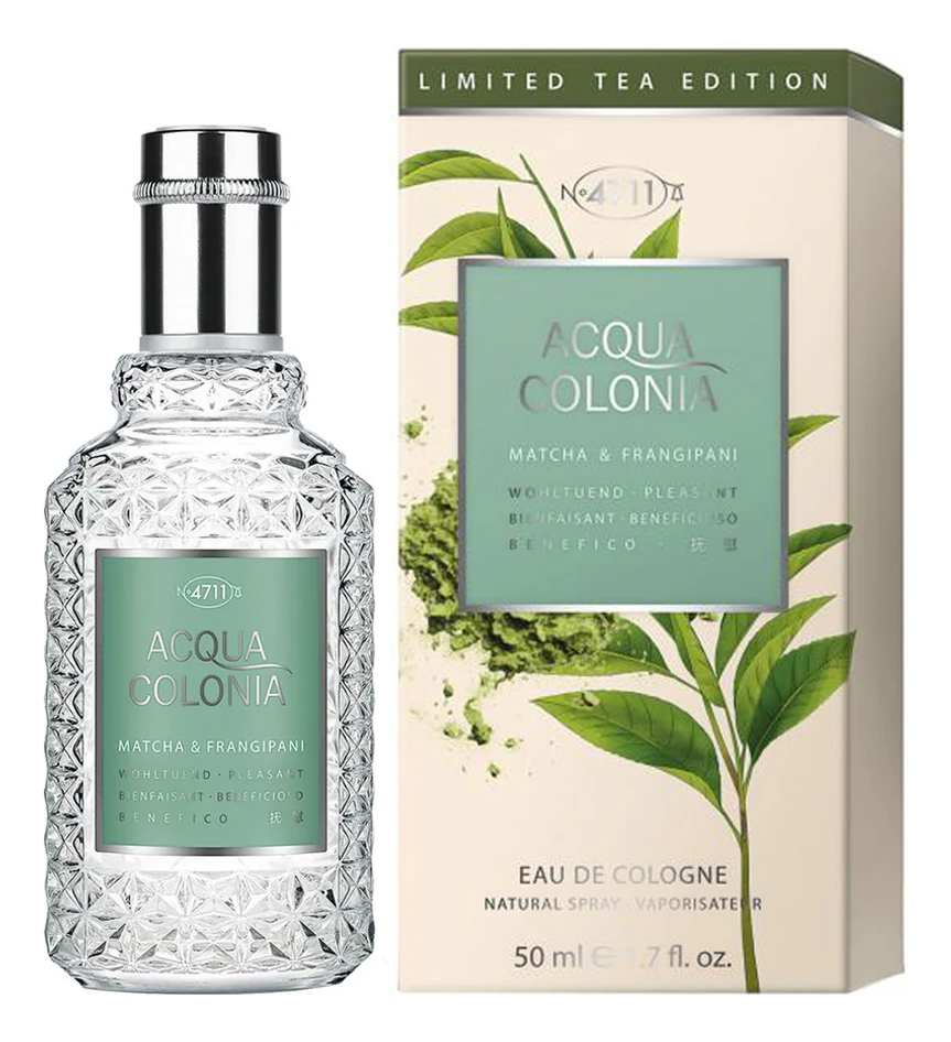 Matcha & Frangipani — легкий и волнующий цветочно-фужерный унисекс-парфюм, выпущенный в 2020 году немецким парфюмерным брендом Maurer & Wirtz в рамках коллекции 4711 Acqua Colonia. Ароматическая композиция напоминает о беззаботных летних днях и увлекательных поездках, создает ощущение летней радости и свежести. Современная интерпретация одеколона заключена в классический для бренда граненый флакон, символизирующий чистоту и свежесть.