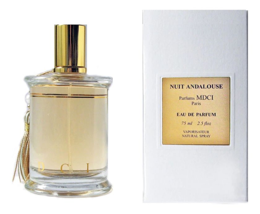 MDCI Parfums Nuit Andalouse («МДСИ Парфюмс. Ночи Андалузии») – новый аромат, выпущенныйв 2013 году. Автором композиции выступает парфюмер Cecile Zarokian. Аромат для женщин принадлежит к семейству цветочныхкомпозиций. Нежный, воздушный и женственный аромат подчеркнет изысканностьсвоей обладательницы. Его сложная цветочная композиция смягчена сладкимиванильными аккордами, которые делают парфюм поистине незабываемым.