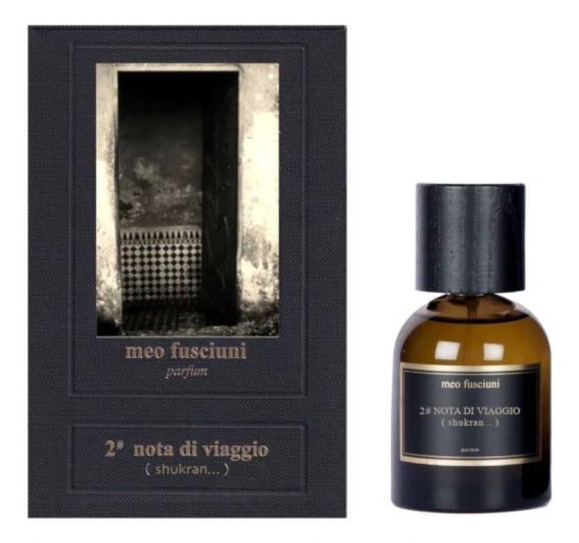Meo Fusciuni 2# nota di viaggio (shukran) – ещё один нишевый аромат, в стиле унисекс (2001 год). Группа – фужерные. Только гений Giuseppe Imprezzabile мог так гармонично и изысканно соединить истинно мужской аромат и нежную женскую свежесть.