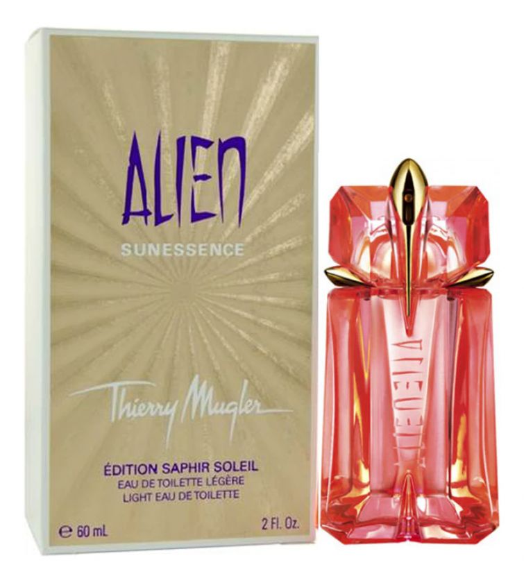 Thierry Mugler Alien Sunessence Edition Saphir Soleil («Тьерри Мюглер. Пришелец. Эссенция солнца. Издание Сапфирового солнца») это более легкая версия оригинального парфюма Alien, созданная в 2009 году специально для летнего сезона. Всеми любимый аромат обретает теперь цветочное, зеленое звучание, свежее и бодрящее, жизнерадостное.