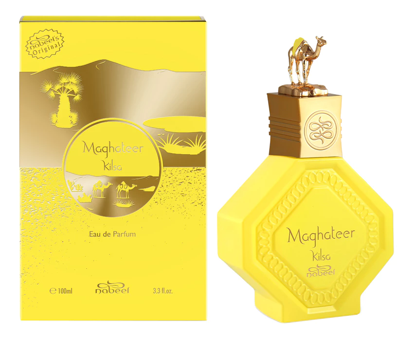 Nabeel Maghateer Kilsa — это унисекс-аромат, представленный поклонникам прозрачных цветочно-водных композиций в 2024 году. Источником вдохновения для парфюмеров послужил образ погонщика верблюда, который, не боясь трудностей дальнего пути, несется вперед, ощущая на коже сухой ветер с привкусом кожи, благородной древесины, цветов, влаги и пряностей в далеком оазисе.