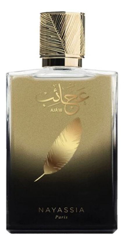 Nayassia Aja'Ib — глубокий, волнующий и многогранный древесно-пряный унисекс-парфюм, выпущенный в 2021 году французским нишевым парфюмерным брендом Nayassia. Аромат является частью коллекции бренда, задуманной как связующее звено между вымыслом и реальностью, когда ольфакторные ощущения приобретают выразительную силу слов. На этот раз вдохновением для создания коллекции парфюмов стал загадочный Восток. Оригинальные золотисто-черные флаконы коллекции, украшенные изображением золотого перышка, идеально отражают особую энергетику заключенных в них ароматов.