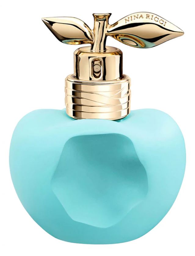 Оригинальный флакон в форме надкушенного голубого яблока с золотистыми листьями завершает образ освежающего ольфакторного десерта.