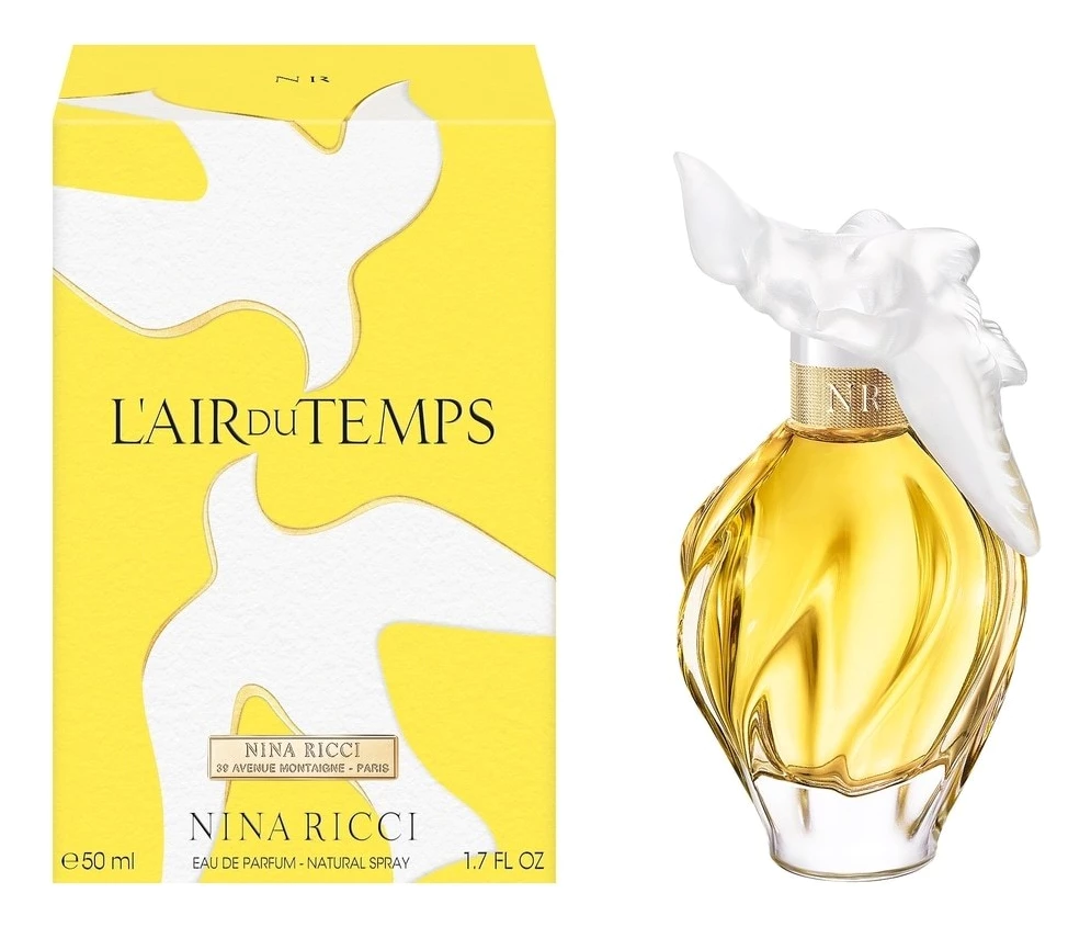 L'Air Du Temps — элитные винтажные духи с цветочным ароматом для женщин, выпущенные в 1948 году знаменитым французским модным домом Nina Ricci. Изысканный и возбуждающий парфюм с названием «Дух времени» — аромат истинной роскоши и аристократической утонченности, элегантный ольфакторный аксессуар, который подчеркнет индивидуальность и неповторимость женского образа современной ультрамодной леди.
