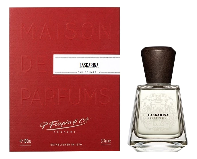 Элегантный богатый шлейф парфюма P.Frapin & Cie Laskarina страстно переплетается дымными цветочными оттенками ириса, древесно-бальзамическими оттенками ладана, пряными жгучими аккордами черного перца и мускусно-амбровым акцентом амброксана.