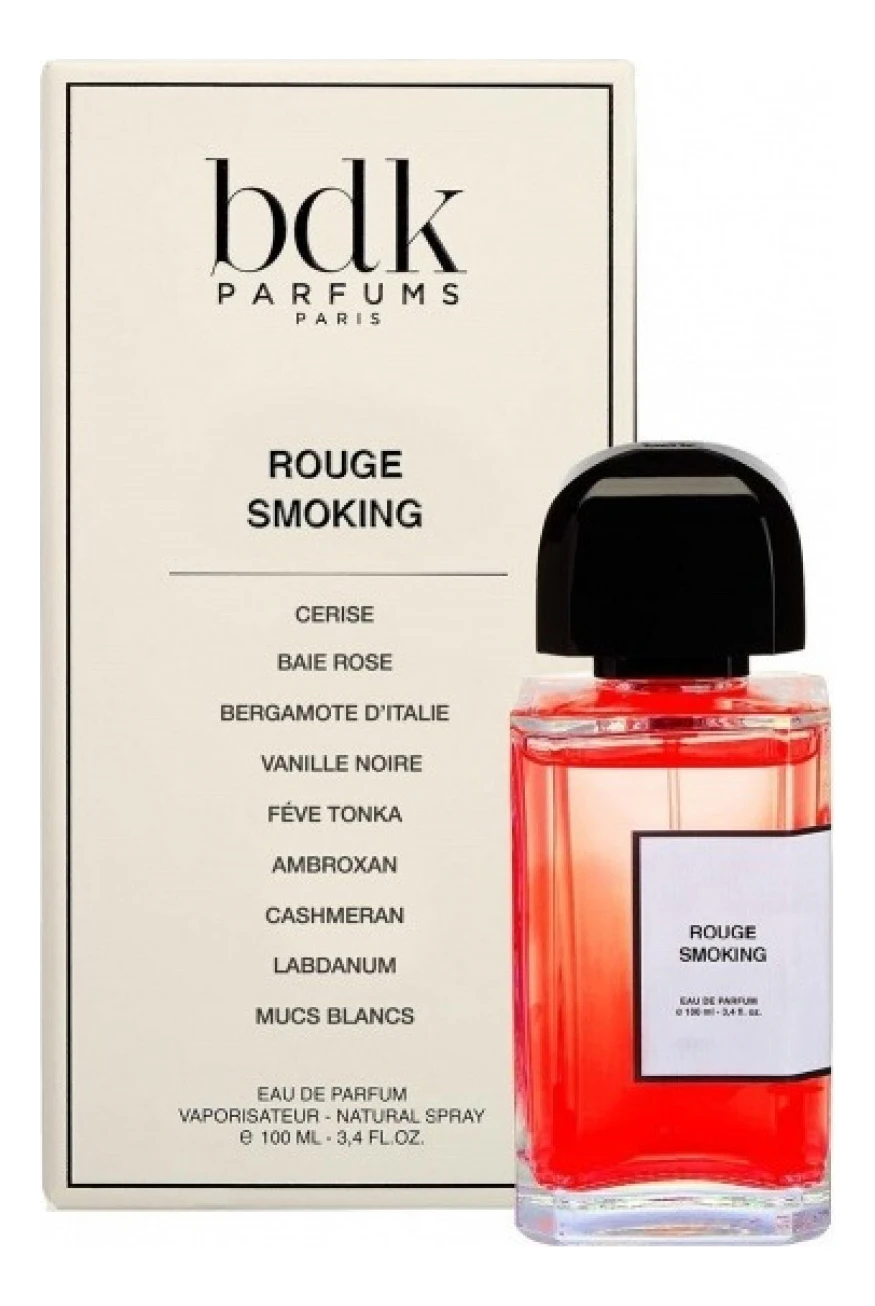 Rouge Smoking — парфюмерная вода с восточным ароматом для женщин и мужчин, созданная в 2018 году парфюмером Amelie Bourgeois для французского бренда нишевой парфюмерии Parfums BDK Paris. Элегантный изысканный унисекс аромат изящно передает атмосферу французской роскоши и богатства, захватывающего романтизма и кокетливости Парижа, блеска модных показов и стильных аристократичных приемов и вечеринок.