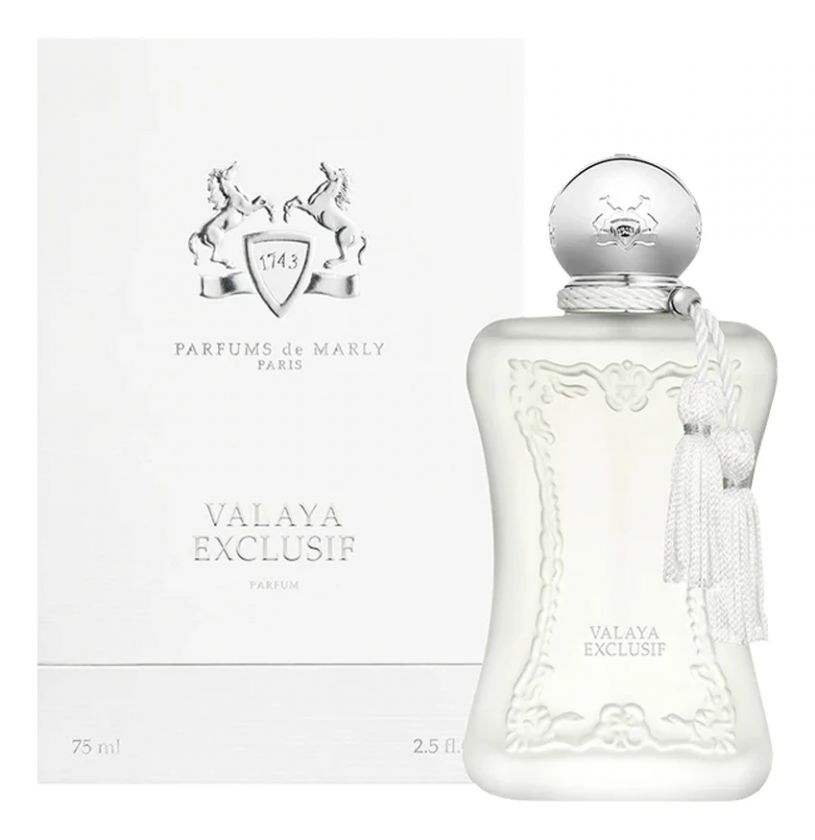 Parfums de Marly Valaya Exclusif — цветочно-древесный женский аромат от Parfums de Marly, вдохновленный чувственностью и изяществом французской придворной моды конца XVIII века. Эта эпоха, характеризующаяся роскошными слоями ткани и восхитительным взаимодействием прозрачности и непрозрачности, отражена не только в композиции аромата, но и в белом матовом флаконе, покрытом нежными цветочными завитками, чья элегантная внешняя часть отражает суть заключенного внутри аромата.