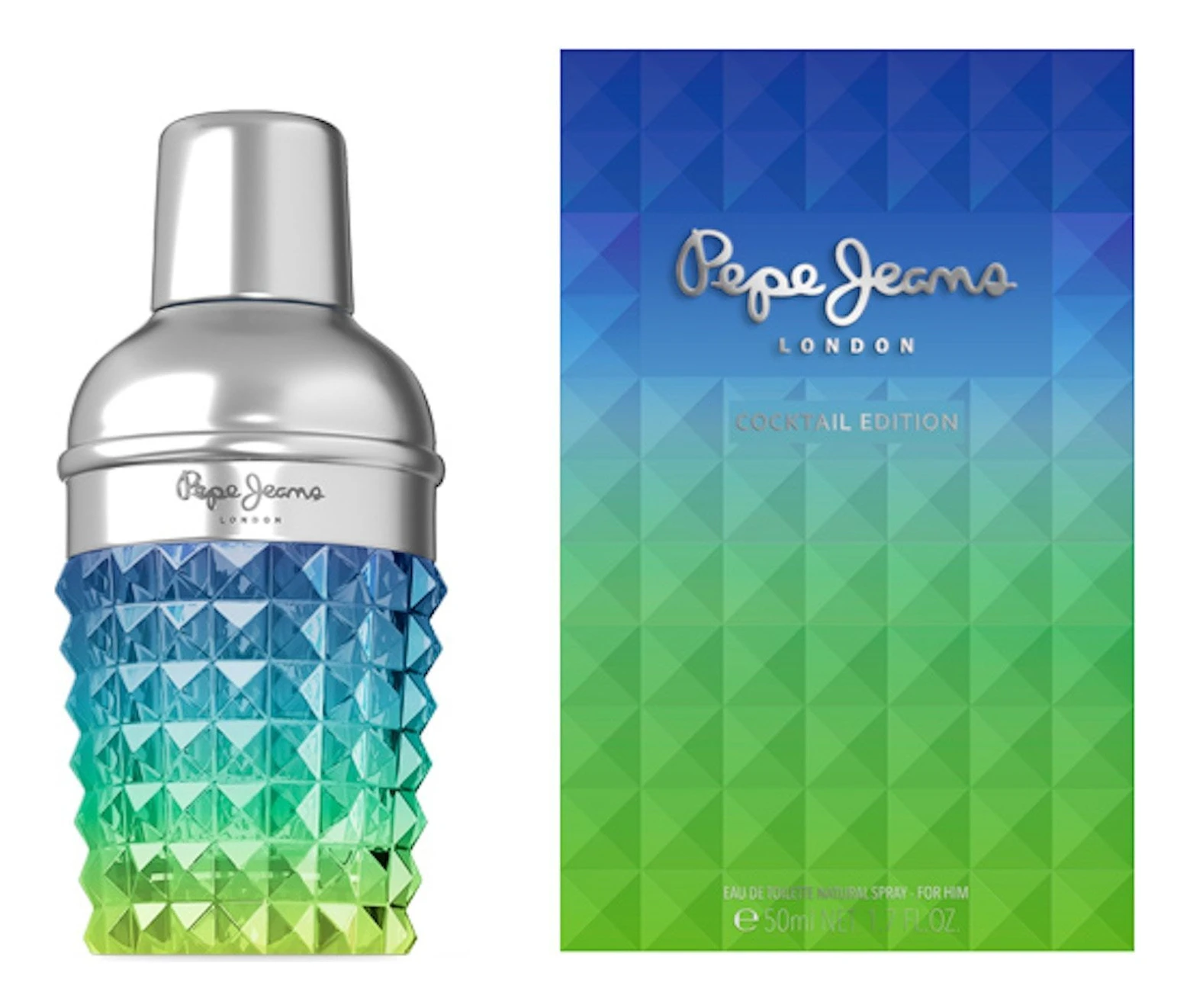 Pepe Jeans London Cocktail Edition For Him — освежающий древесно-цитрусовый мужской аромат, выпущенный британским модным домом Pepe Jeans London. Заключенный в красивый флакон, парфюм покоряет нотами сияющего летнего дня. Изысканное хрустальное стекло сияющего зелено-голубого оттенка вдохновлено цветами теплого тропического моря и бездонного голубого неба.