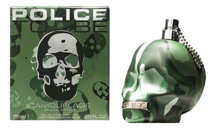 To Be Camouflage For Men – яркий и многогранный мужской восточно-фужерный аромат, выпущенный в 2015 году итальянским брендом модных аксессуаров Police в рамках популярной коллекции парфюмов «To Be». На этот раз знаменитый флакон в форме черепа окрашен в цвет камуфляжа и украшен контрастными деталями из серебристого металла. Парфюм адресован мужчинам в возрасте от 18 до 35 лет, которые ведут активный образ жизни и неизменно следуют веяниям моды, при этом сохраняя природную харизму.