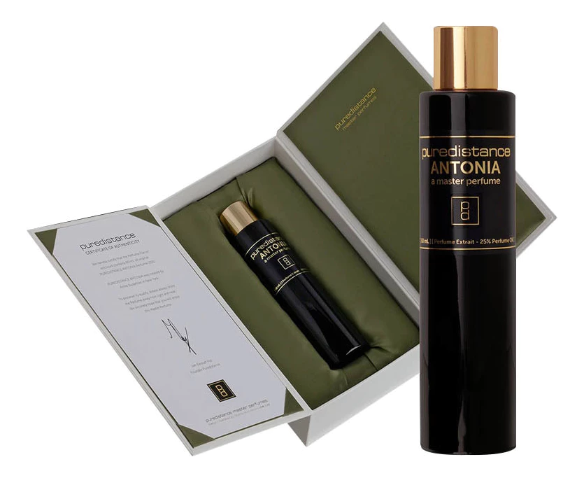 Новый женский аромат Puredistance Antonia («Пьюрдистанс. Антония») создан в 2010 году, чтобы стать Вашим тайным оружием в борьбе за мужские сердца. Трудно даже представить себе аромат еще более женственный и изящный, объединивший в себе ноты свежей зелени, ярких цветов и умопомрачительных кремово-ванильных аккордов. Автор парфюмерной композиции - Анни Бузантьян (Annie Buzantian).