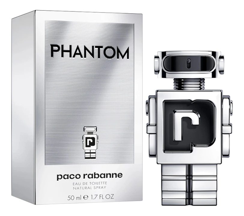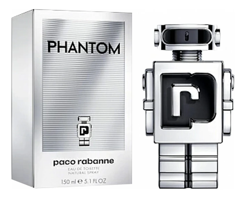 Rabanne Phantom — элитная туалетная вода с древесно-фужерным цветочным ароматом для мужчин, представлення в 2021 году парфюмерной линией модного испанского бренда Rabanne. Дерзкий стильный аромат Phantom (Фантом) – новая провокационная современная парфюмерная композиция, которая заключена в оригинальный флакон в форме стилизованного робота.