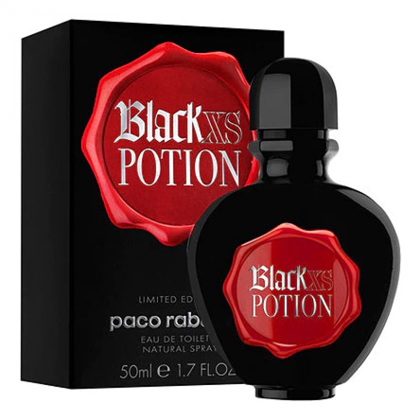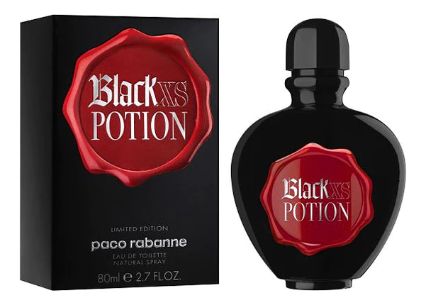 Rabanne Black XS Potion for Her — аромат, выпущенный в 2014 году. Парфюм для женщин принадлежит к семейству цветочных с древесными нотками. Авторами композиции стали парфюмеры Olivier Cresp и Emilie Coppermann. Страстный и густой аромат вдохновлен энергетикой влюбленности и открывает новые грани отношений. Жаркий, как настоящая любовь, он раскрывается после заката и мерцает всеми своими оттенками.