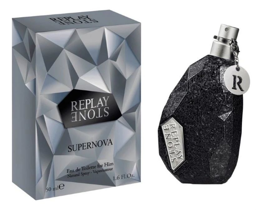 Stone Supernova For Him - яркий древесно-фужерный мужской аромат, наполненный контрастирующими нотами, символизирующими силу и нежность сильного пола. Парфюм вышел в 2016 году под маркой известного итальянского модного дома Replay. Традиционно бренд выпускает парные ароматы для него и для нее. Ароматический дуэт 2016 года продолжает тематику, начатую их предшественниками год назад. Он вдохновлен известным приемом изготовления современных модельных джинсов – специальной стирки с применением пемзы, благодаря чему каждая пара джинсов становится уникальной. От своих предшественников парфюмы унаследовали и уникальные флаконы в форме пемзы, применяемой для обработки джинсов. А вот искристая мерцающая поверхность флаконов почерпнута в уникальном природном явлении – взрыве сверхновой звезды, что нашло отражение в названии аромата.