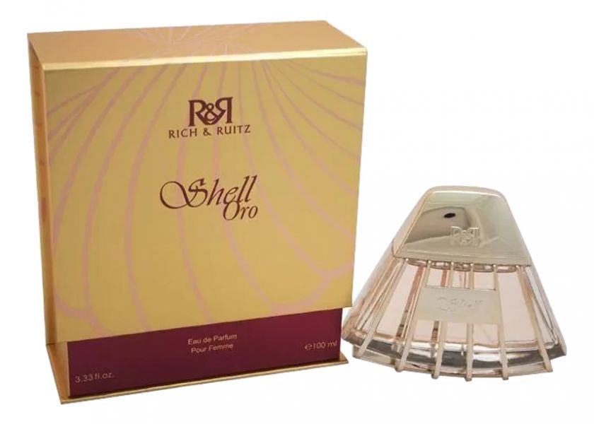 Rich & Ruitz Shell Oro — освежающий фруктово-гурманский женский аромат, выпущенный в 2021 году арабским парфюмерным брендом Rich & Ruitz. Ноты этого прекрасного аромата сродни безмятежности волн, разбивающихся о скалы, и удовольствию от потягивания напитка на пляже. Стойкость аромата уносит вас в ночь, заставляя улыбаться сияющим над вами звездам.