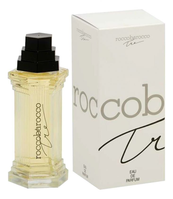Парфюм Tre, характеризуется как чувственный, эротический и колдовской аромат южной ночи, с ее томными объятиями и дурманящими запахами пышных цветов. Roccobarocco Tre («Роккобарокко. Тре») можно назвать одой, посвященной женской красоте, страсти и чувственности.