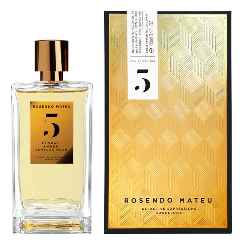 Rosendo Mateu № 5 Floral, Amber, Sensual Musk — волнующий восточно-цветочный унисекс-аромат, выпущенный испанским нишевым парфюмерным брендом Rosendo Mateu в 2017 году. Аромат является переосмыслением ранее выпущенной парфюмером Розенду Мату ароматической композиции с тем же названием. В новой редакции аромат приобрел более яркое, современное звучание.