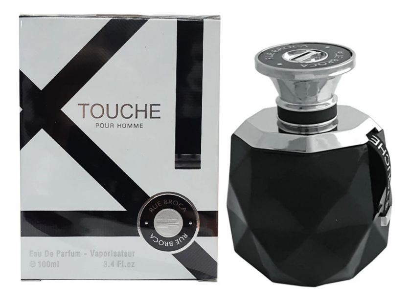 Touche Pour Homme — оригинальный, стильный и гармоничный мужской фруктовый аромат с легкими ванильными нюансами, выпущенный в 2019 году арабским парфюмерным брендом Rue Broca. Выполненный в форме кристалла угольно-черный флакон, увенчанный серебристым колпачком, идеально отражает особый стиль заключенного в нем парфюма.