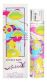 Удлиненная узкая форма флакона украшена яркими отпечатками поцелуев так же, как и картонная упаковка.