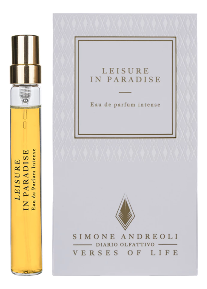 Leisure In Paradise — расслабляющий и невероятно комфортный древесно-фруктовый унисекс-парфюм, выпущенный в 2020 году под маркой парфюмерного бренда Simone Andreoli. Ароматическая композиция вдохновлена отдыхом в раю Карибских островов. Теплый карибский бриз, белый песок, сливочный кокос и томная ваниль. Звук моря, как плеск души, тропическая поэма и проявление чувств, танцующих на солнце. Искусство получать радость от жизни, впитывать ее и оставлять с собой на всю оставшуюся жизнь.