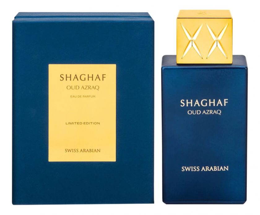 Swiss Arabian Shaghaf Oud Azraq — восточно-древесный унисекс-аромат с тонкими сладкими акцентами, выпущенный в 2022 году арабским парфюмерным брендом Swiss Arabian. Это аромат удового дерева с золотистой амброй, который добавляет теплоты роскоши и хорошего вкуса в холодный день. Стильный флакон кобальтого цвета с золотистым рифленым колпачком, идеально отражает особый стиль заключенного в нем парфюма.