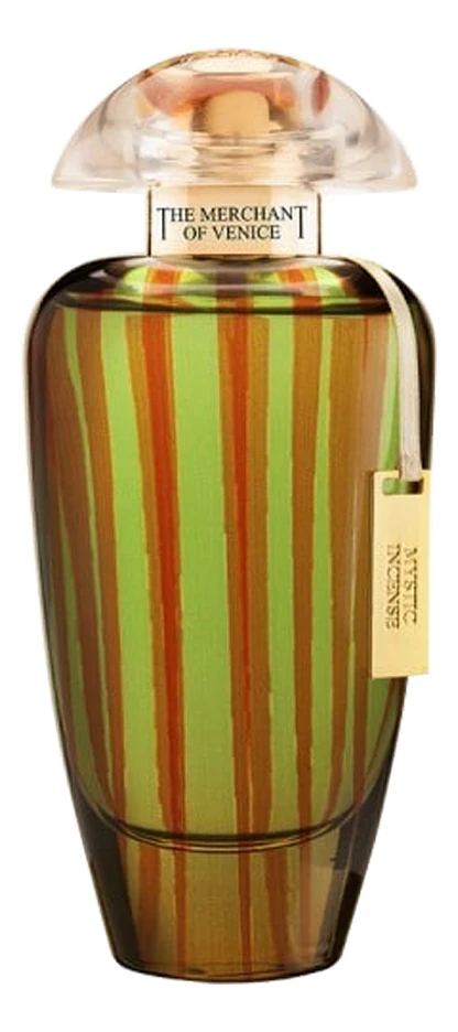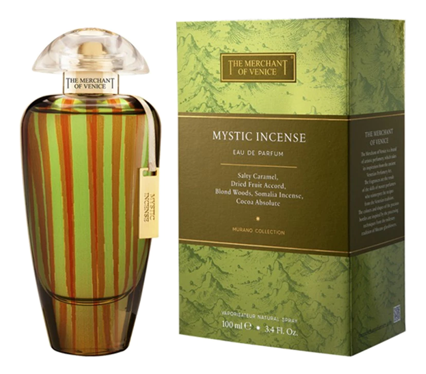 Mystic Incense — глубокий и загадочный восточно-гурманский унисекс-парфюм, выпущенный в 2018 году итальянским парфюмерным брендом The Merchant Of Venice в рамках «Муранской» коллекции, которая рассказывает о длительных поездках по странам Востока, которые завершались в Венеции — пересечении древних морских путей Средиземноморья. Эта оригинальная обонятельная композиция вдохновлена древним маршрутом, связывавшим Венецию с Коста-дель-Либано и Кипром, по которому активно шла торговля ценной древесиной, шафраном и, конечно, ладаном.